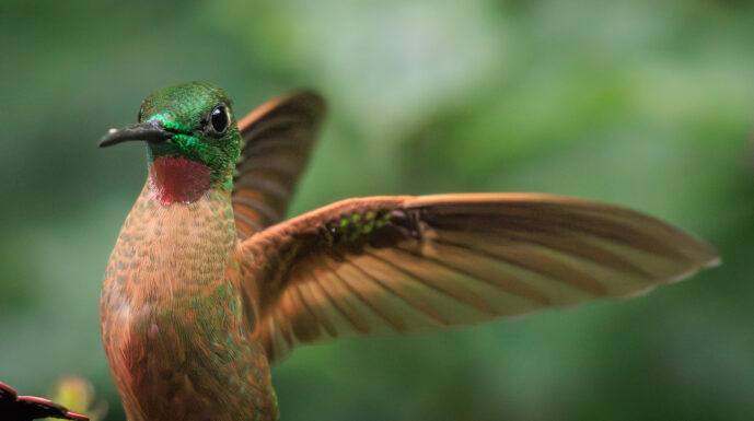 These elusive birds are famous for their remarkable "duetting" skills, where mated pairs perform highly synchronized, rhythmic songs that are timed so perfectly they sound like a single individual singing. To evade predators, they utilize a dramatic "freezing" defense, remaining completely motionless to blend their rich, reddish-chestnut plumage into the Colombian leaf litter. Highly social yet shy, they navigate the dense forest floor in tight-knit family groups called coveys and are known for their strong preference for walking over flying, often scurrying through the undergrowth like small, feathered shadows.